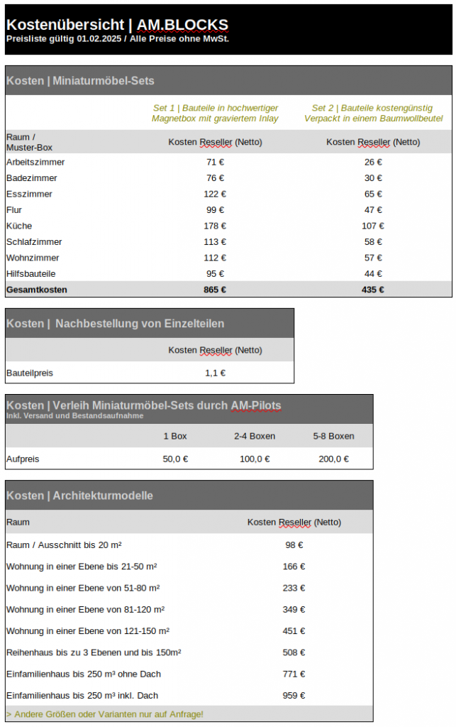 Kostenübersicht | AM.Blocks Diese Seite ist akutell in Bearbeitung! Zurück zum Partner-Shop Bereich | AM.Blocks Zurück zum Partner-Shop Bereich | AM.Blocks
